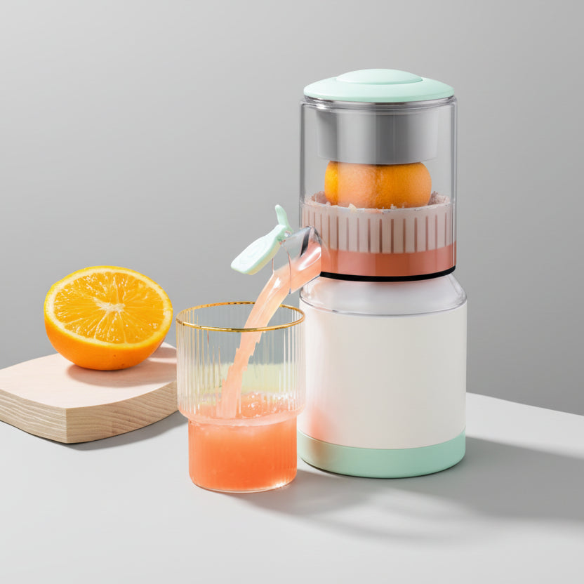 2. [Free hands]: Compared with the traditional manual orange squeezer, the new citrus juicer no longer needs to be pressed by hand. Control the start with just one button, freeing your hands and requiring less effort.